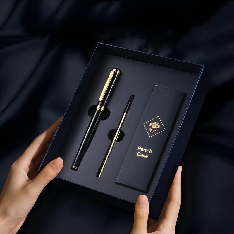 Bút ký tên cao cấp Montagut 088 chính hãng màu đen nắp vân tặng kèm 3 ngòi thay thế, túi và hộp