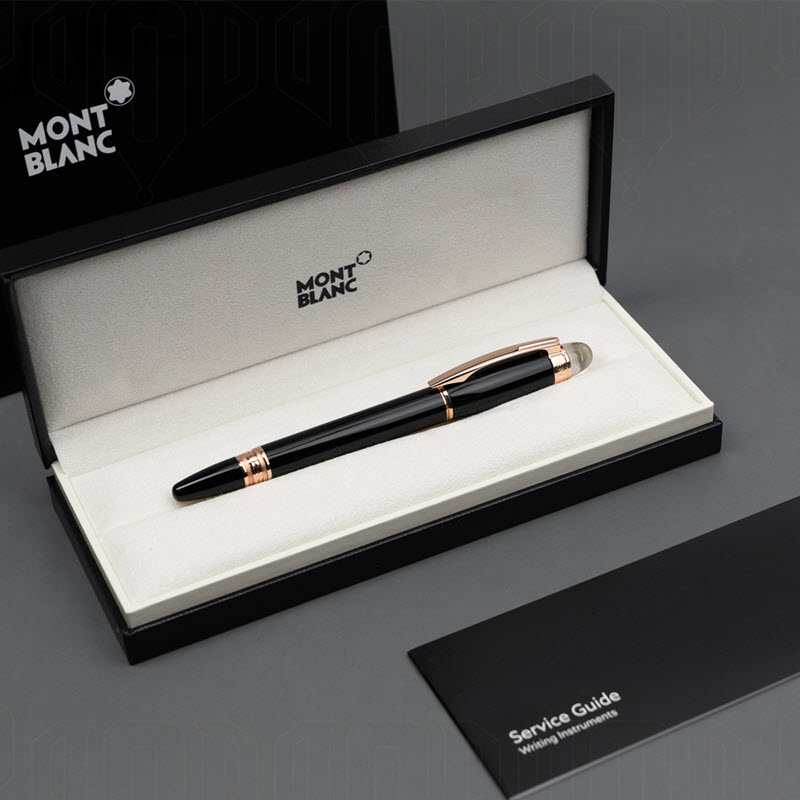 Điểm nổi bật của phiên bản này nằm ở sự kết hợp giữa thân bút resin đen bóng và các chi tiết mạ red gold. Sự tương phản giữa hai tông màu giúp tổng thể trở nên hài hòa, vừa tinh tế vừa đủ nổi bật. Đặc biệt, phần đỉnh trong suốt với logo ngôi sao Montblanc tạo hiệu ứng “lơ lửng”, mang lại cảm giác mới lạ và khác biệt so với các dòng bút truyền thống.