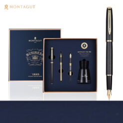 Với thiết kế tinh tế và màu sắc đen thanh lịch, bút ký tên Montagut 086 không chỉ là một công cụ viết thông thường mà còn là biểu tượng của sự cao quý và phong cách. Bộ sản phẩm bút Montagut này gồm: 1 bút, 2 ngòi thay thế (1 ngòi bút bi, 1 ngòi bút máy), 1 lọ mực, hộp đựng, túi giấy. Wiix miễn phí khắc tên lên sản phẩm.