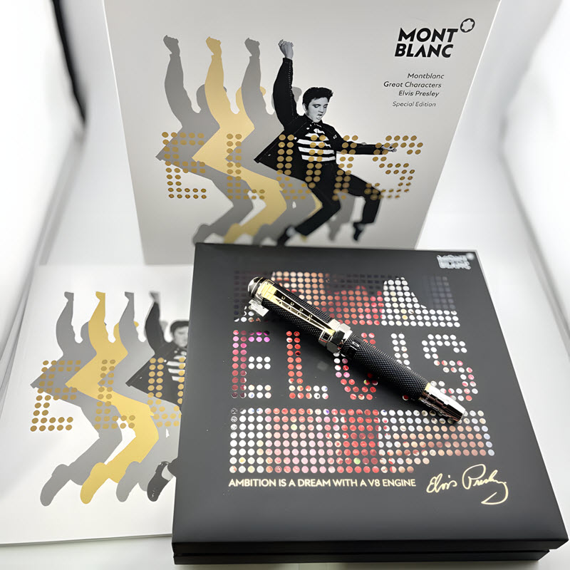 Lấy cảm hứng từ Elvis Presley – người được mệnh danh là “King of Rock’n Roll”, chiếc bút tái hiện tinh thần âm nhạc thông qua ngôn ngữ thiết kế độc đáo. Hình dáng thân bút gợi liên tưởng đến bugi động cơ, kết hợp cùng các chi tiết lấy cảm hứng từ xe Cadillac và trang sức biểu tượng của Elvis. Tất cả tạo nên một tổng thể vừa mạnh mẽ, vừa mang chiều sâu nghệ thuật.