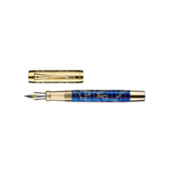 Nắp và các thành phần khác của Parker 2016238 được mạ vàng tinh xảo và sáng bóng. Đỉnh nắp bút được khắc bằng laser với một mô hình kinh tuyến trên nền đá lapis xanh đại dương hai cara rất hoàn hảo. Mỗi viên đá được lựa chọn tinh tế và độc đáo, làm cho mỗi cây bút trong sê-ri trở nên đặc biệt hơn bao giờ hết.