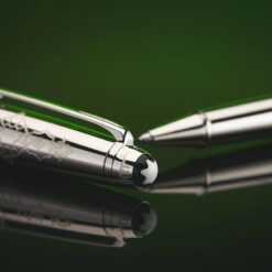 Điểm đặc biệt của chiếc bút này chính là cài bút được mạ bạch kim sáng bóng, mang lại sự bền bỉ và vẻ ngoài quý phái. Thân bút được khắc những họa tiết tinh xảo, tạo nên một tổng thể hài hòa và vô cùng ấn tượng. Đầu nắp bút cũng được khắc một cách đặc biệt, tạo điểm nhấn đầy tinh tế cho chiếc bút.