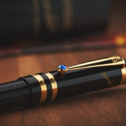 Từng chi tiết nhỏ trên bút được mạ vàng cẩn thận, tạo nên vẻ đẹp lộng lẫy và sang trọng. Gài bút không chỉ là điểm nhấn về thiết kế mà còn được đính đá quý, tạo nên sự tinh tế và đẳng cấp. Thân bút được làm từ chất liệu nhựa quý cao cấp, mang lại cảm giác chắc chắn và bền bỉ khi sử dụng.