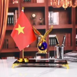 Ống đựng bút kèm đế pha lê K9 để bàn cao cấp LBWG012 kèm đế cắm cờ