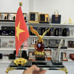 Sự kết hợp hoàn hảo giữa chất liệu pha lê K9 cao cấp và công nghệ đánh bóng hiện đại của Nhật Bản tạo mang lại vẻ đẹp tinh tế và trong trẻo, làm nổi bật đường nét và chi tiết của sản phẩm. Sản phẩm kèm thêm kèm đế cắm cờ thích hợp để bàn làm việc, quà tặng cho đối tác, sếp…