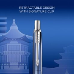 Mặt thân bút được khắc hoặc xuyên họa tiết biểu tượng kiến trúc hoặc đường nét thành phố Seoul – một chi tiết tinh tế tạo nên sự khác biệt so với các bản Jotter chuẩn. Clip hình mũi tên ký hiệu Parker vẫn hiện diện như một dấu ấn nhận diện thương hiệu. Tổng thể mang phong cách hiện đại nhưng vẫn giữ được nét cổ điển sang trọng.