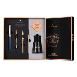 Set bút này được trình bày gọn gàng trong một hộp đẹp mắt và sang trọng, tạo sự ấn tượng ngay từ lúc mở hộp. Túi đựng hãng đi kèm giúp bảo vệ bút ký và tạo điểm nhấn thẩm mỹ, cũng như mang đến tính di động cho bộ sưu tập viết của bạn. Với những vật giá trị đi kèm như bút ký tên Montagut màu xanh, mực bút máy Montagut không carbon, ngòi bút máy thay thế, ngòi bút bi ký thay thế.